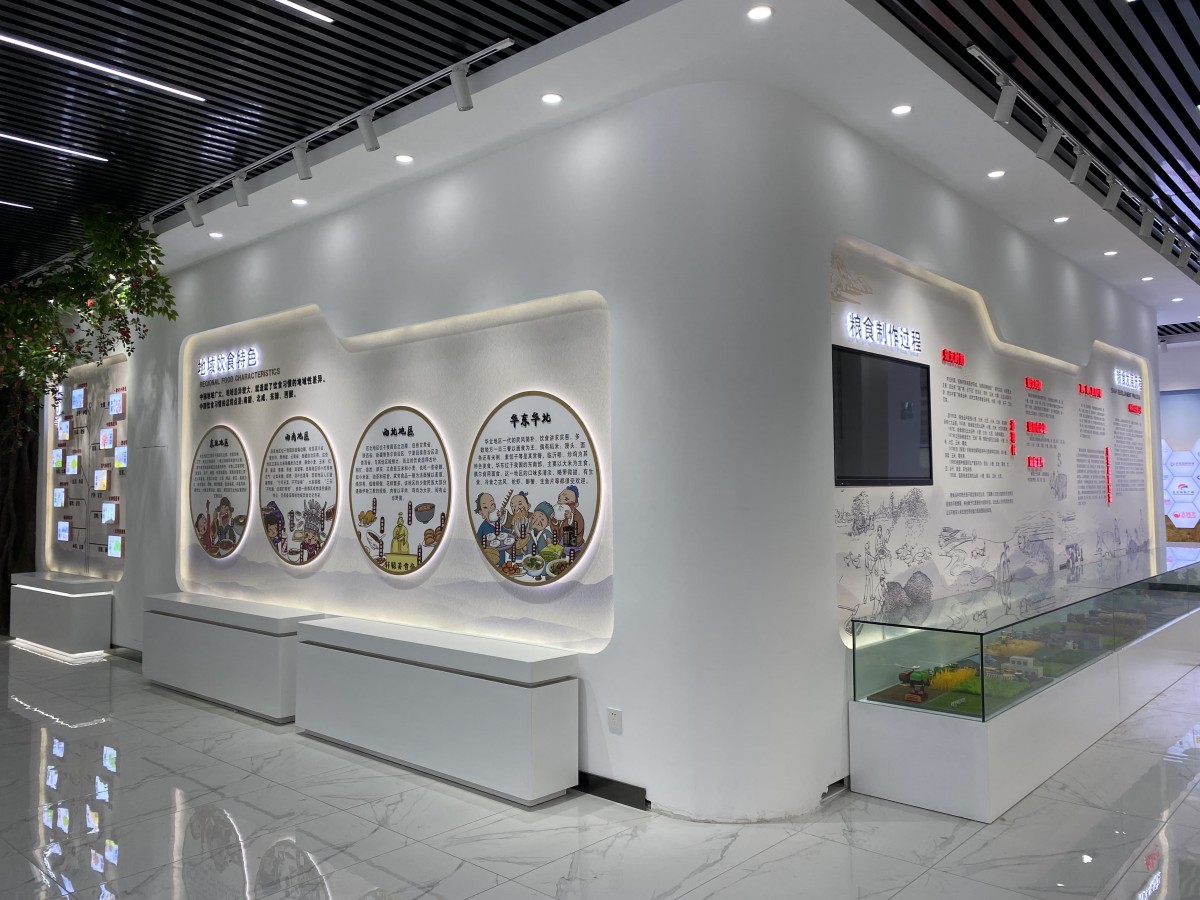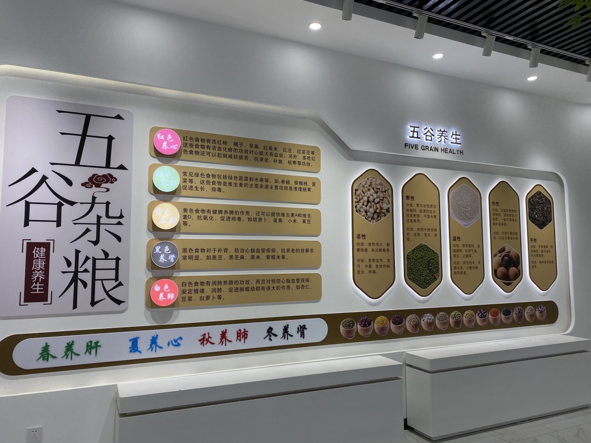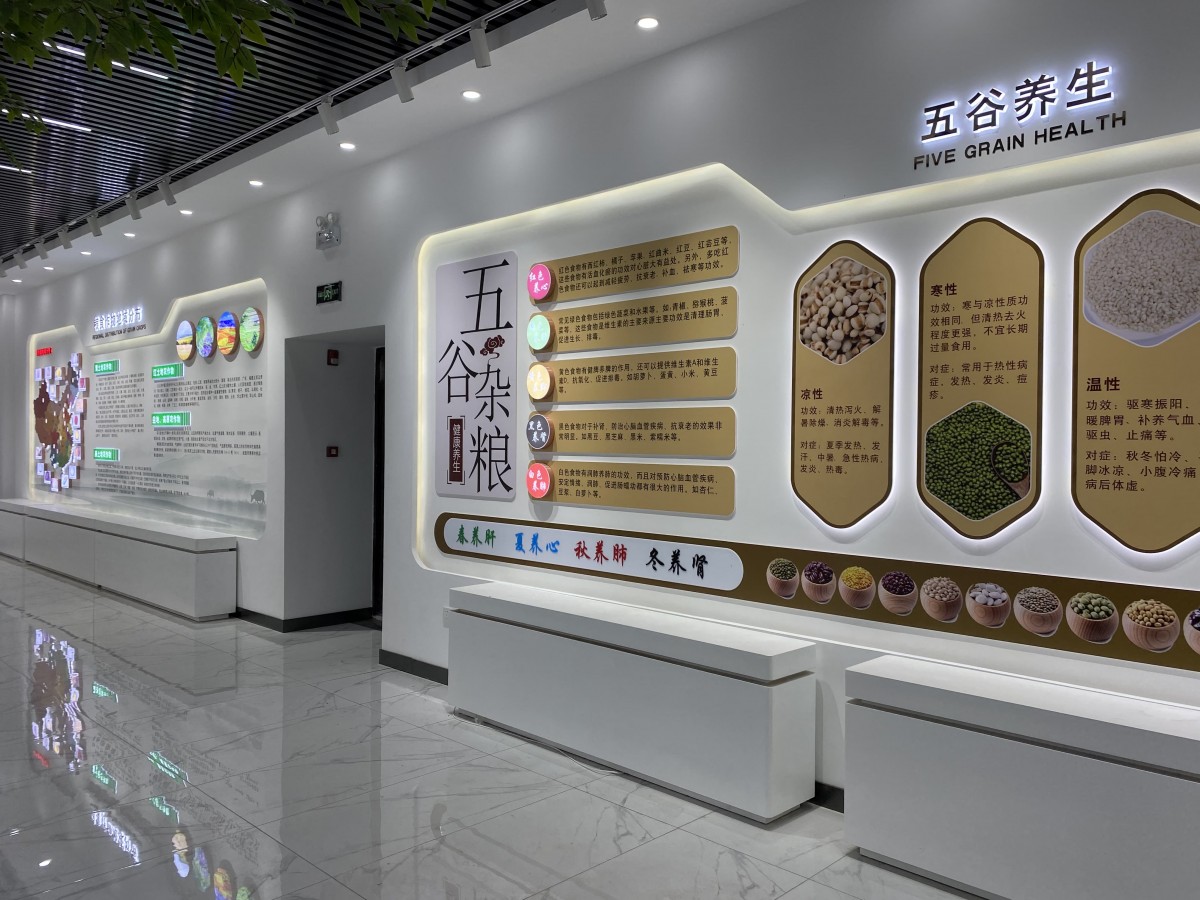 自然質樸的材質搭配、柔和的光環境(如色溫3000K-4000K的動態調節)以及香薰系統的運用,共同營造出溫馨舒適的氛圍。這種對觸覺、視覺、嗅覺的精密計算,使顧客停留時間延長,記憶留存率提升,從而加深對健康生活方式的認同。?展廳通過優化動線規劃與視覺焦點布局,提升運營效率。將傳統粥文化與粗糧養生理念進行當代詮釋。通過場景化復現傳統飲食技藝,如現場研磨演示與養生粥品體驗,實現文化符號的在地性表達,使品牌溢價空間擴大。?